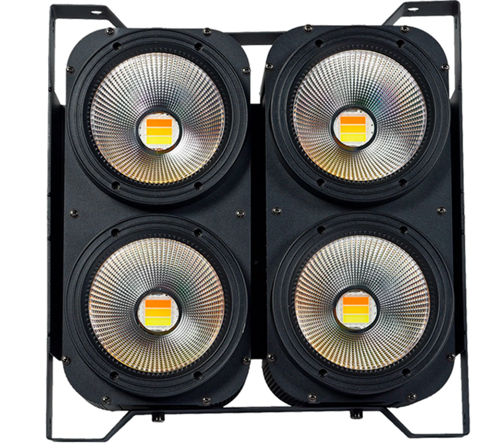 Algam Lighting's BLINDER400 CW-WWA offers all the advantages of halogen blinders, with greatly reduced energy consumption thanks to its 4 x 100W LEDs. These CW/WWA COB LEDs offer excellent efficiency and a range of colors from cool white to the warm amber hues typical of halogen systems.