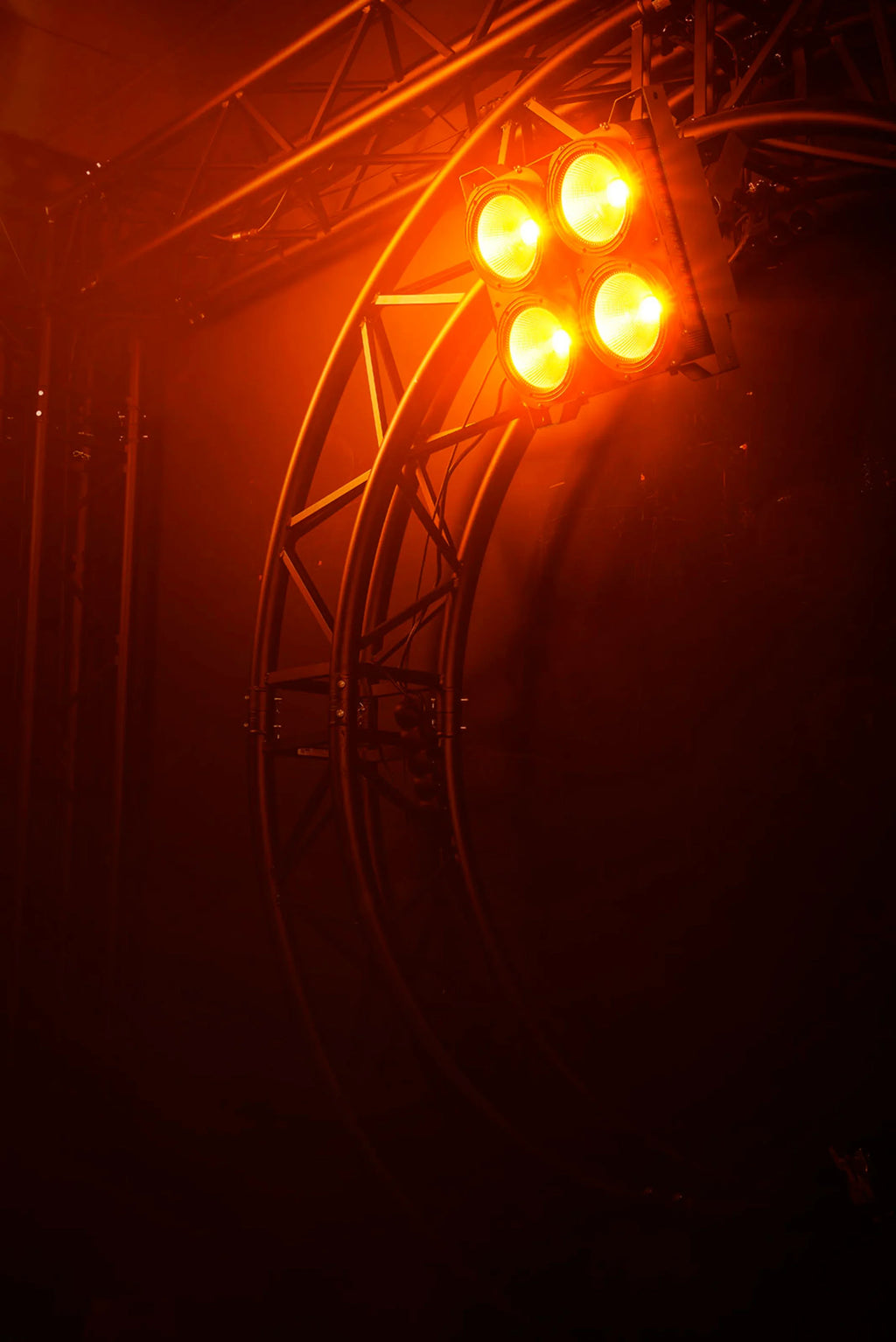 Blinders are ultra-powerful stage lighting systems, used to generate a momentarily blinding wave of light to accompany the music and stage performance of the artists. Traditionally based on high-power halogen bulbs, these energy-hungry lighting systems have an amber tint due to the heating of the filament.