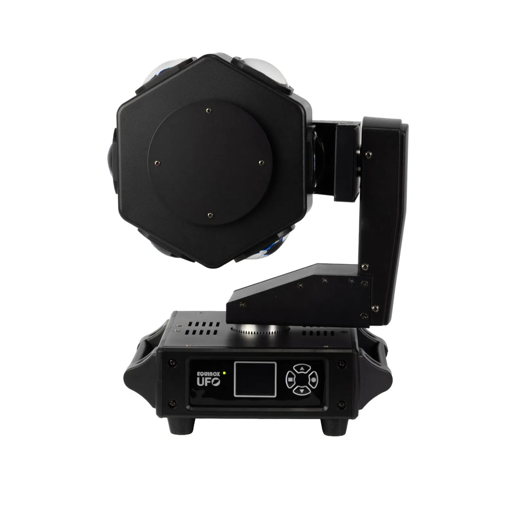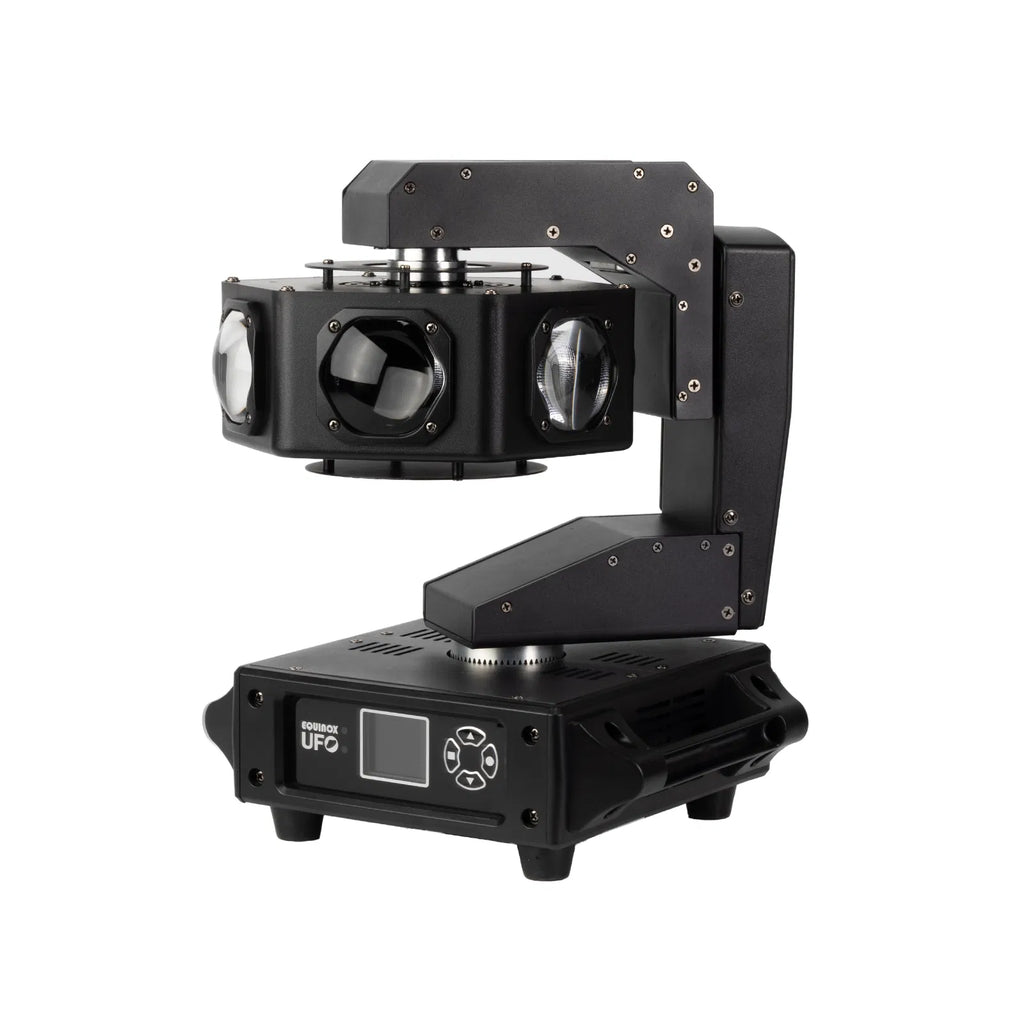 The Equinox UFO is a multi-beam moving head creating unique and dynamic effects. Its narrow, razor-sharp beams of RGBW light create rotating aerial effects that rise, fall and hover. The sleek single arm design is both robust, compact and light weight. Built-in auto and sound-activated light shows are pre-programmed whilst multiple fixtures can be linked in primary and secondary modes. DMX is also on-board for endless control options.