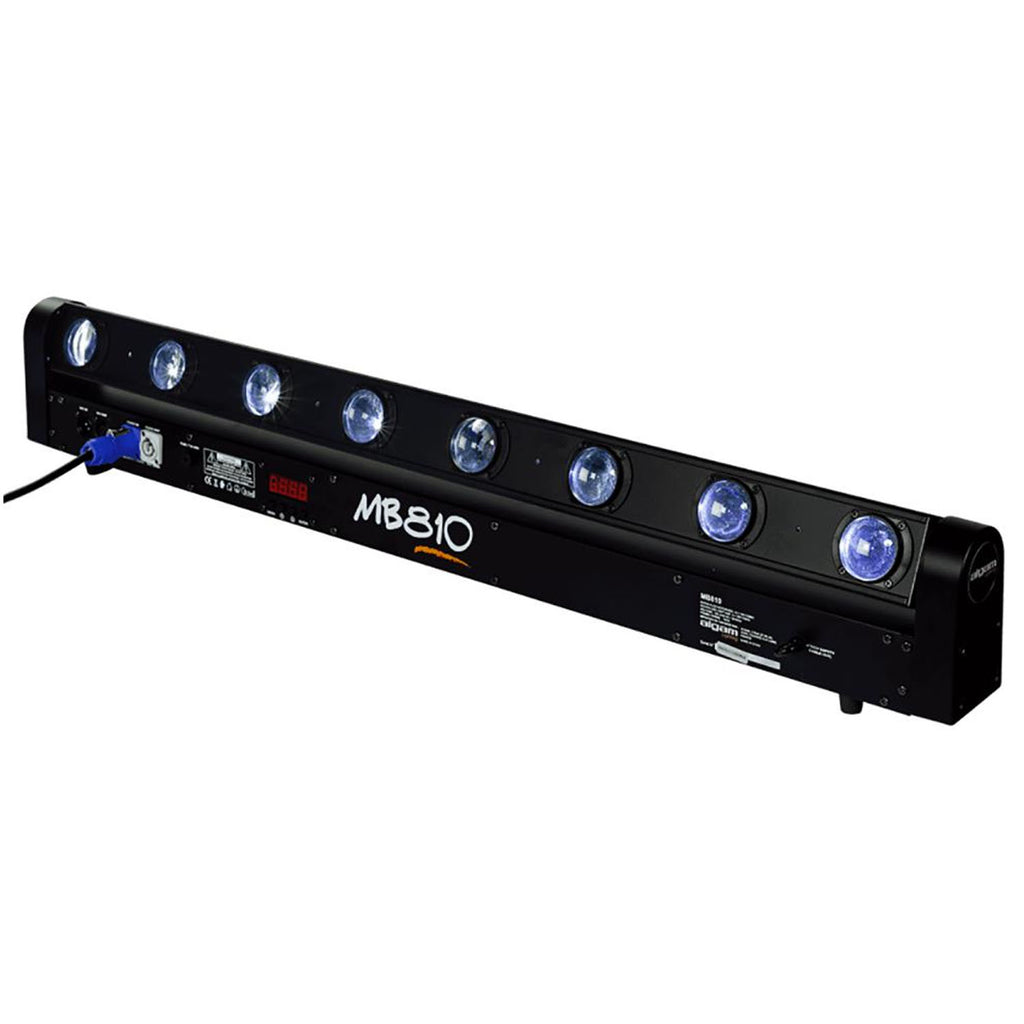 The MB810 is a motorised LED bar offering 8 powerful and independently controllable 10-watt RGBW LEDs with a 2.5° beam angle for the most colourful and captivating effects. Its 22 internal programmes allow for a wide range of effects from sweep to chase to strobe. Its quiet, high-energy motorisation allows tilt movements up to 265 degrees with fantastic responsiveness. The MB810 can operate in music-controlled, automatic or DMX mode, with 9 or 38 control channels available.