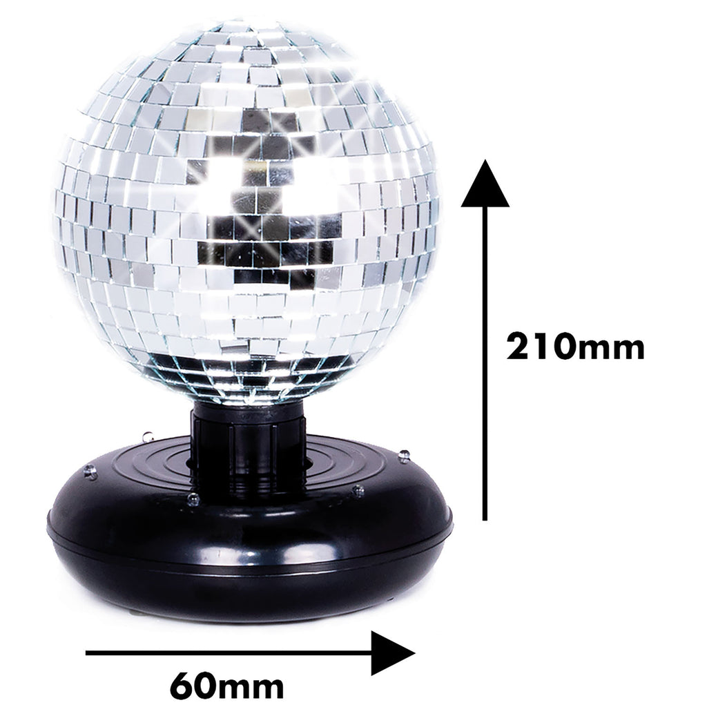 Cheetah free standing mirror ball with built in rotator.This6 inch mirror ball is mounted on an integrated, free standing black base and features built-in long life LEDS and power supply. The product can rotate in either a clockwise or anti clockwise direction. The mirror ball can be used in houses, pubs, bars and restaurants for parties, events, Christmas, birthdays etc. and gives a realistic disco type effect. The mirror ball is low voltage for safety.