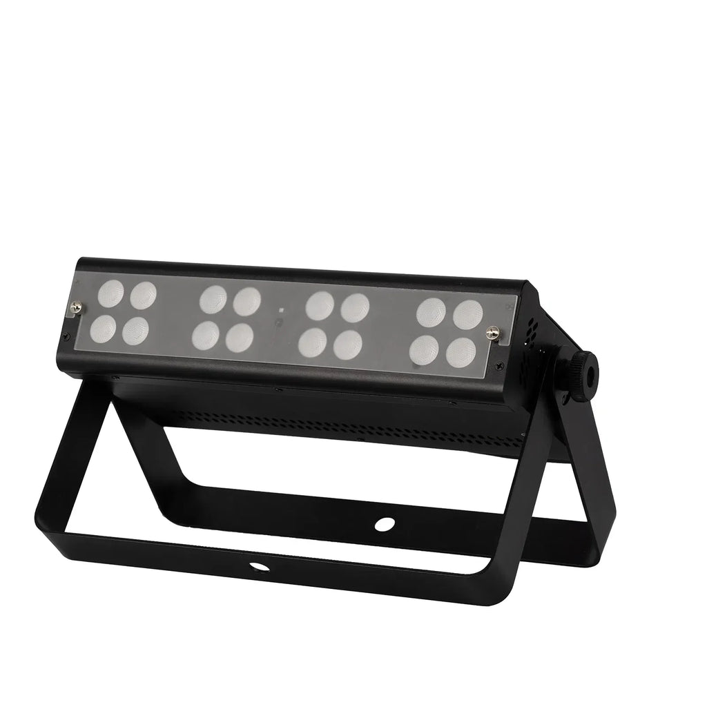 Packed with sixteen 4W RGBWW LEDs, the Equinox Quad Blox delivers bold, vibrant colour with seamless blending and a removable frost filter for smooth washes. It features a variety of built-in shows accessible via the onboard menu or an included IR remote, facilitating straightforward plug-and-play operation. For advanced users, multiple DMX modes provide individual control over each segment, and the unit is compatible with W-DMX USB for wireless connectivity. The Quad Blox comes equipped with a dual bracket, allowing for flexible rigging or floor-standing setups.