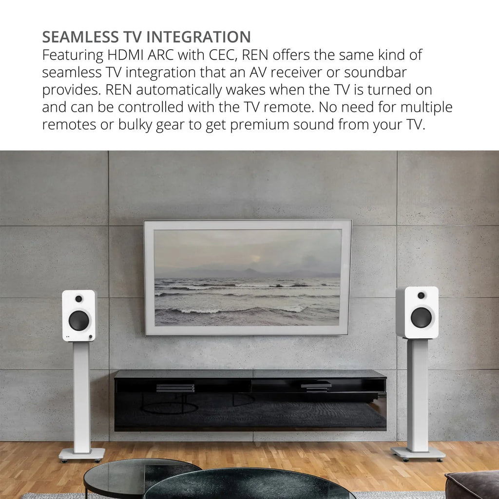 SEAMLESS TV INTEGRATION – Featuring HDMI ARC with CEC, REN offers the same kind of seamless TV integration that an AV receiver or soundbar provides. REN automatically wakes when the TV is turned on and can be controlled with the TV remote. No need for multiple remotes or bulky gear to get premium sound from your TV.