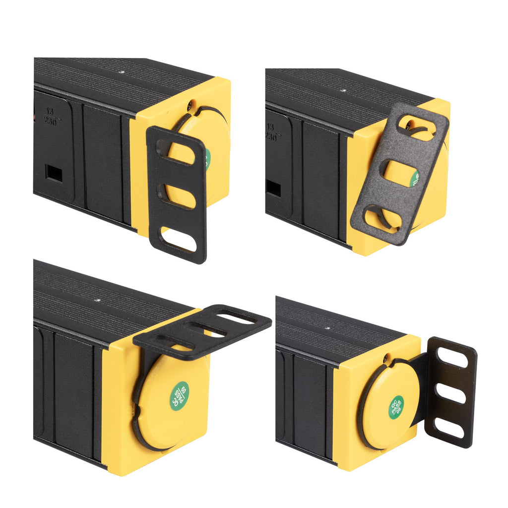 The Pulse 19” 1U 6 Way UK socket panel PDU with rotating rack ears is ideal for both fixed rack cabinet installation & rack mounted mobile use. Fitted with 360° rotatable rack ears allows for multiple mounting positions within rack cabinets, cases, stands or even surface mountable.